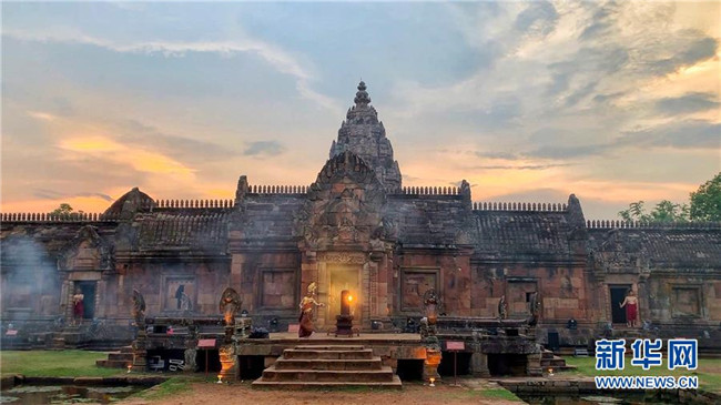 這是4月5日拍攝的泰國武里南府低城寺。 一年一度的“登帕儂隆山節(jié)”在泰國東北部毗鄰柬埔寨的武里南府帕儂隆山舉辦。當(dāng)?shù)厝艘怨叛b巡游展示獨(dú)特的傳統(tǒng)文化,希望能吸引更多外國游客、促進(jìn)當(dāng)?shù)芈糜螛I(yè)發(fā)展。 新華社記者 張可任 攝