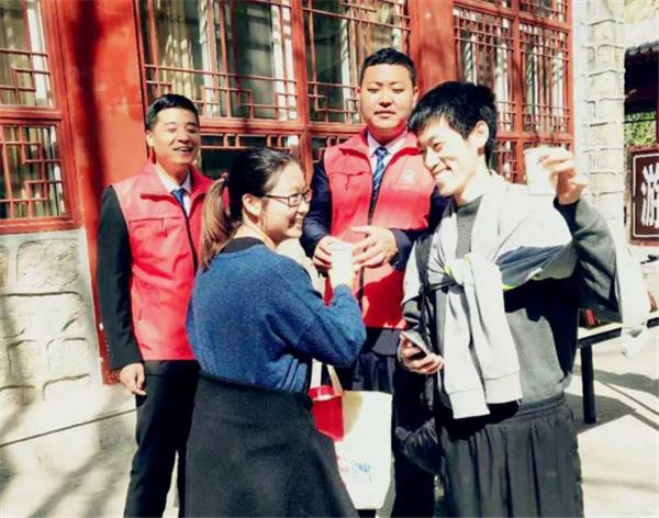 來(lái)自景區(qū)一線工作崗位的30名“紅馬甲”志愿者首次參與到度節(jié)執(zhí)勤工作中,志愿者們?cè)陉P(guān)鍵區(qū)域向游客提供游覽咨詢、道路指引、免費(fèi)熱水供應(yīng)、免費(fèi)醫(yī)療救護(hù)等服務(wù)。