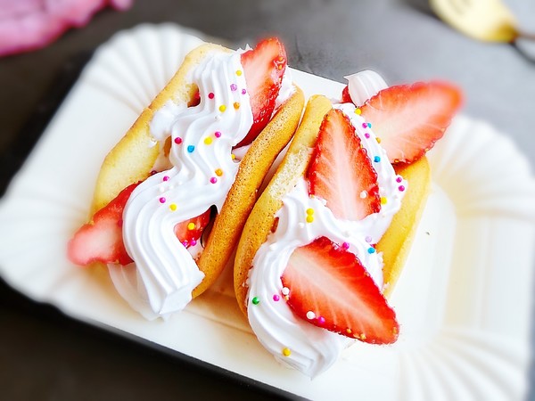15.擠奶油再裝飾上草莓就可以了。冷藏后口感會更好。