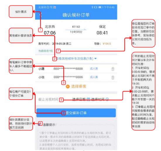 12306客戶端內的候補購票示意圖