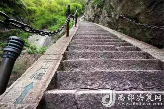 登華山有三道險關,合稱華山三大險,當?shù)亓鱾髦@樣一句民謠:“千尺幢, 百尺峽,老君犁溝往上爬。”