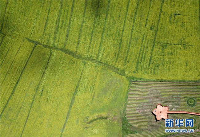 7月29日,當(dāng)?shù)鼐用裨诼登h的一處油菜花田拍照賞景。 新華社記者 馬寧 攝