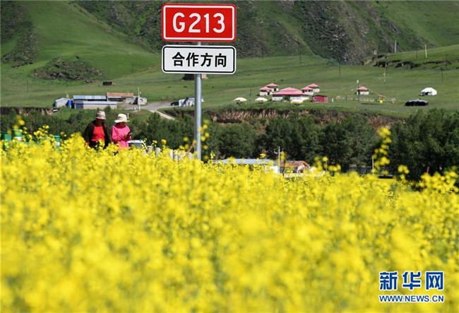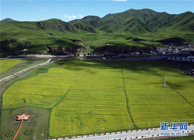盛夏時節(jié),位于青藏高原東北部的甘肅省甘南藏族自治州碌曲縣油菜花田美不勝收。