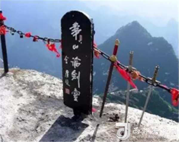 說(shuō)到北峰,不可不提的自然是華山論劍了,在峰頂有一塊石牌,上面是金庸先生親筆題寫(xiě)的“華山論劍”,此處也成為游客登臨華山必到之處。