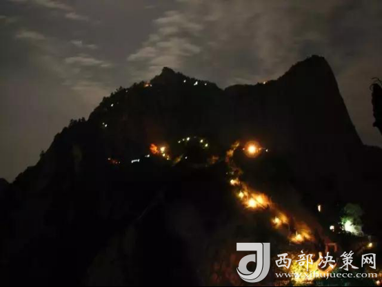 見慣了白天綺麗自然風(fēng)光的華山,其實(shí)華山的夜也是別有一番韻味。
