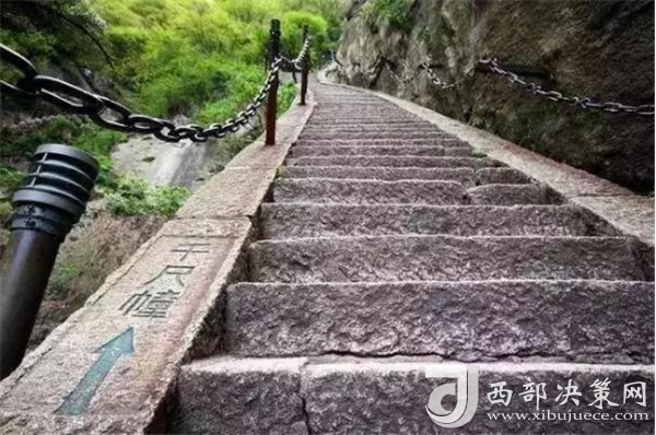 千百年前,陡峭如削的華山,艱險異常,難以登攀,只能“望山興嘆”“遠而望之”。后來人們循猿徑,依山就勢,巧妙地利用天設地造的石隙嶺脊,開鑿出了登山道路,始有天下奇觀“自古華山一條路”。