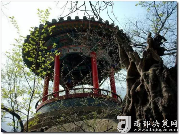 山蓀亭旁有一古樹,龍?bào)打敖Y(jié),郁郁蔥蔥,傳說(shuō)為陳摶手植。因無(wú)人修剪,愿怎么長(zhǎng)就怎么長(zhǎng),無(wú)憂無(wú)慮,顧名無(wú)憂。所以長(zhǎng)成今天如此形狀。雖已有千余年,但仍顯得樸茂挺健,生機(jī)盎然。