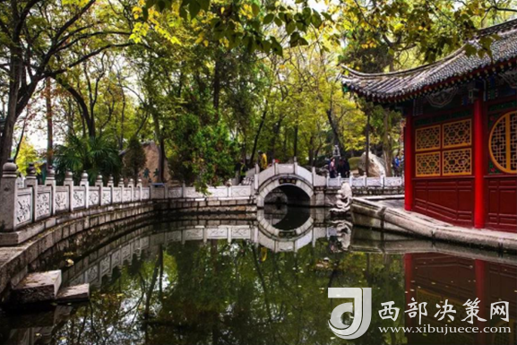 康有為曾寫詩(shī)贊美:谷口清泉引曲流,長(zhǎng)廊回醫(yī)樹無(wú)憂。泉水岳色可忘出,讓與希夷睡萬(wàn)秋。
