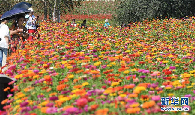 9月4日,長(zhǎng)春市蓮花山生態(tài)旅游度假區(qū)花田里鮮花綻放。