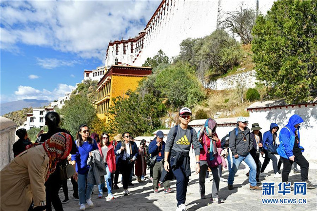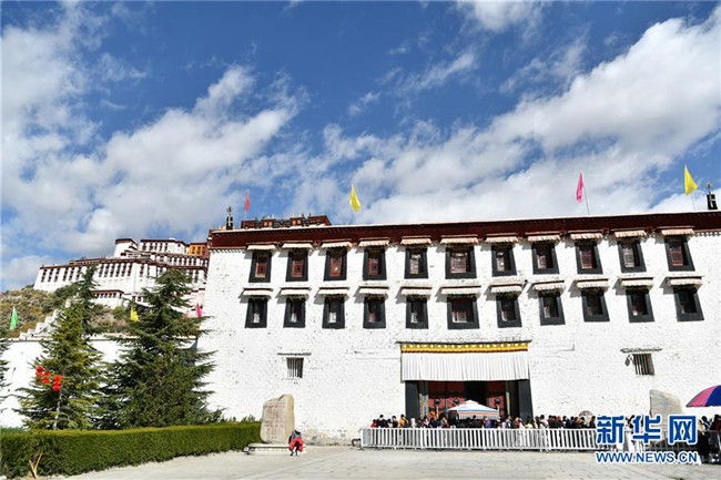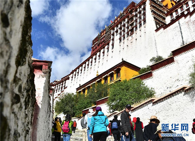 10月15日,游客在布達拉宮景區(qū)游覽。