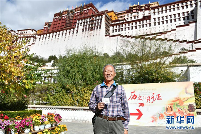 10月15日,來自廣東的游客王衛(wèi)東展示他用身份證換取的布達拉宮散客免費預約券。