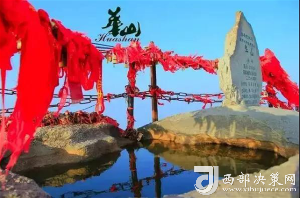 南峰華山極頂可以拍攝最高峰海拔碑、天池及身后的三公山、三鳳山。