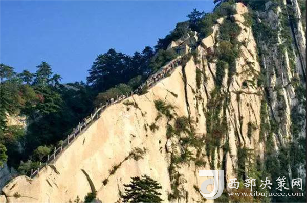 千百年前,陡峭如削的華山,艱險異常,難以登攀,只能望山興嘆、遠(yuǎn)而望之。后來人們循猿徑,依山就勢,巧妙地利用天設(shè)地造的石隙嶺脊,開鑿出了登山道路,始有天下奇觀“自古華山一條路”。