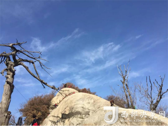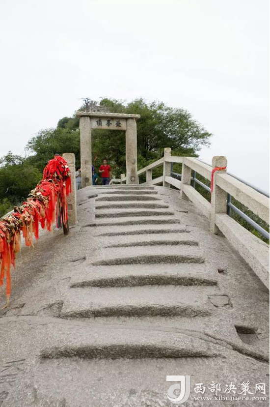 說到北峰,不可不提的自然是華山論劍了,在峰頂有一塊石牌,上面是金庸先生親筆題寫的“華山論劍”,此處也成為游客登臨華山必到之處。