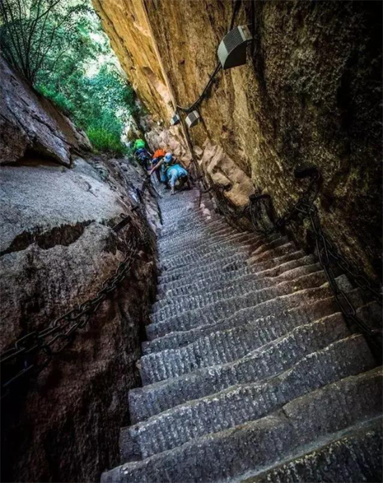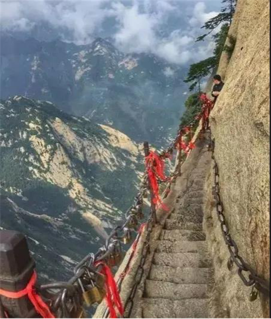 其如履薄刃,絕壑千尺的地勢使得很多游客膽戰(zhàn)心驚,其中最著名的就是韓愈大哭投書求助的故事。