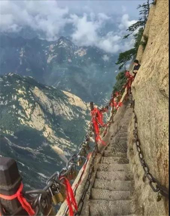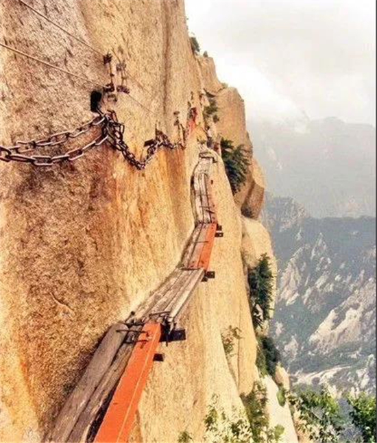 世界十大險道之一,有700余年的歷史,是華山派第一代宗師元代高道賀志真為遠離塵世靜修成仙,在萬仞絕壁上鑲嵌石釘搭木椽而筑。是華山的險中之險。古往今來,歷險探勝者絡(luò)繹不絕。