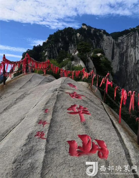 眾所周知 “自古華山一條路”是一道奇觀。這條道路或越澗跨溪,或臨崖盤山,或入崖間深谷,或走峭壁嶺脊,或平坦或曲陡,或?qū)挸ɑ颡M窄,曲折變化,跌宕起伏,把人帶入意境深邃的萬般景象之中。道路兩旁遍布的摩崖石刻,使人仿佛走進(jìn)一個書法藝術(shù)的走廊。一步一景一傳說,更使華山沿途披上了濃厚的文化色彩。