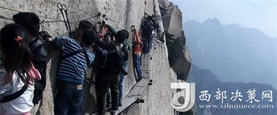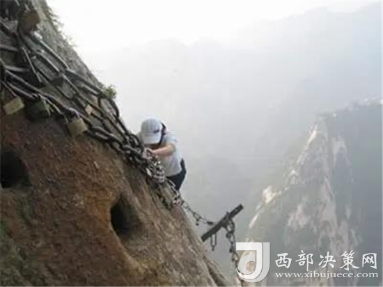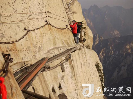 長空棧道位于華山南峰東側(cè)山腰,是華山派第一代宗師元代高道賀志真為遠(yuǎn)離塵世靜修成仙,在萬仞絕壁上鑲嵌石釘搭木椽而筑。棧道上下皆是懸崖絕壁,鐵索橫懸,由條石搭成尺許路面,下由石柱固定,游人至此,面壁貼腹,屏氣挪步,被喻為“華山第一天險”。不過經(jīng)歷了新冠病毒的考驗(yàn),真的不知道這對于偉大的醫(yī)護(hù)人員來說算不算險。