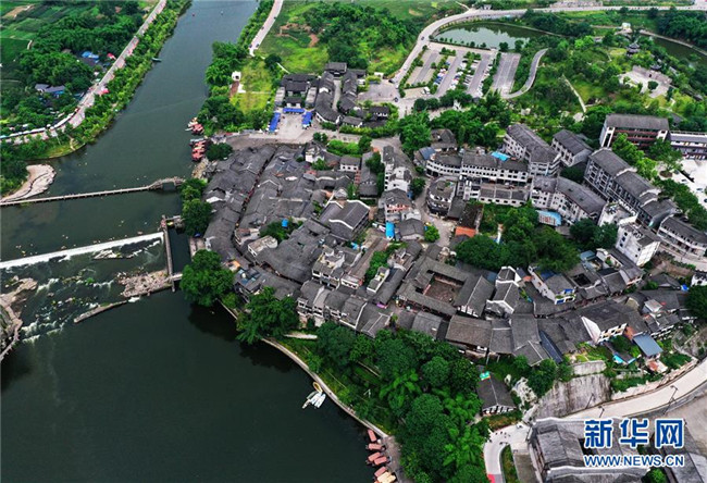 6月26日拍攝的萬(wàn)靈古鎮(zhèn)(無(wú)人機(jī)照片)。 新華社記者 王全超 攝