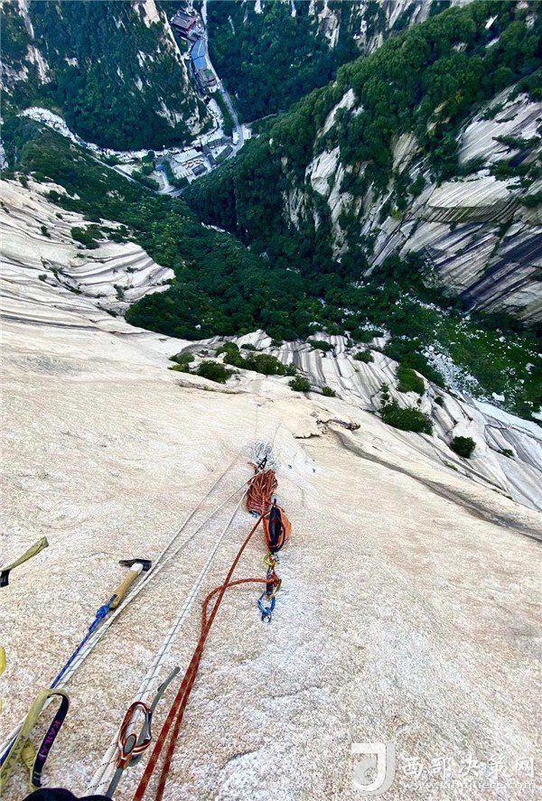 自然巖壁結(jié)組挑戰(zhàn)賽選手成功登頂。挑戰(zhàn)了華山白云峰六百多米的花崗巖大巖壁,并在巖壁上生活了兩天,不僅向大家展示了運(yùn)動(dòng)員的專業(yè)攀巖技術(shù),更展示了超強(qiáng)的野外生存能力。