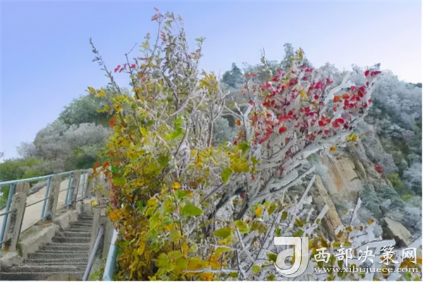 在深秋,翻飛的落葉伴著初雪裝扮著整個(gè)華山