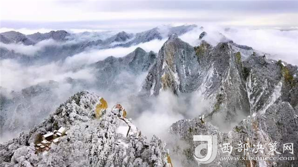 冬日,白雪與蒼翠的華山奇松、靈動的云海交相輝映,如夢如幻;滿山遍野玉樹瓊花,樹枝上通體的霧凇晶瑩剔透,繪就冬日畫境,美不勝收,游人如置身人間仙境。下面請您欣賞一組無人機拍攝的華山南峰與三公山。(供稿:華旅集團營銷中心)