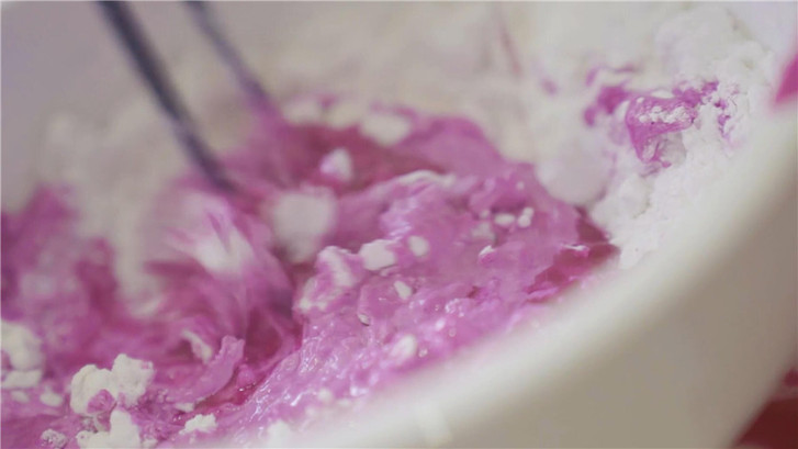 把榨好的蔬果汁與糯米粉和面團(tuán)。