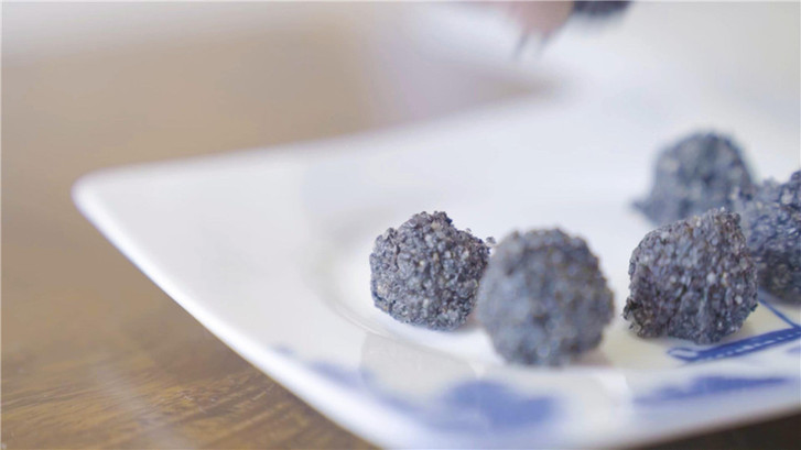 將炒熟的黑芝麻加入白砂糖放入研磨機。