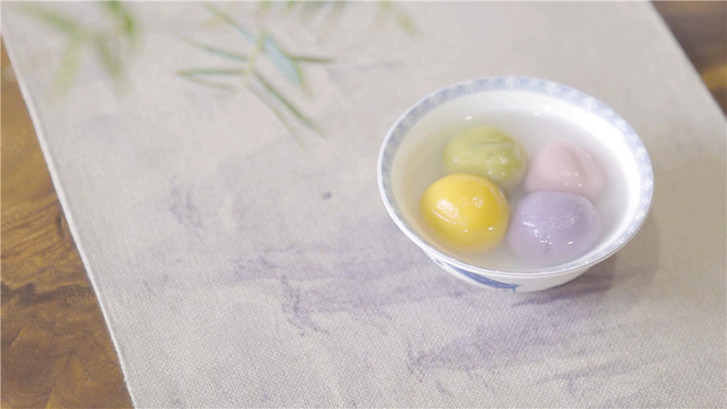 五彩湯圓制作完成。