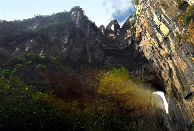 天龍橋,橋高200米,跨度300米,因其位居第一、頂天立地之勢而得名,橋中有洞,洞中生洞,洞如迷宮,既壯觀又神奇。青龍橋,三座橋中垂直高差最大的一座,橋高350米,寬150米,跨度400米,夕陽西下,霞光萬道,忽明忽暗,似一條真龍直上青天。黑龍橋,橋孔深黑暗,橋洞頂部巖石如一條黑龍藏身于此,橋身以其流態(tài)各異的"三迭泉"、"一線泉"、"珍珠泉"、"霧泉"四眼寶泉而獨具特色。