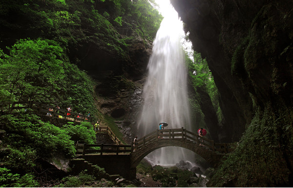 天生三橋景區(qū),大自然鬼斧神工之杰作,其壯麗的自然風(fēng)光使之備受電影大片的青睞,已經(jīng)成為《變形金剛4》及《滿城盡帶黃金甲》的拍攝地。清明節(jié)期間,天生三橋景區(qū)野生梨花、櫻花次第綻放,滿園春色,變形金剛在春花的映襯下也展現(xiàn)俠骨柔情的一面。景區(qū)內(nèi)玉樹蔥蔥、鳥語花香下的三橋夾兩坑壯觀景色,是相機無法拍攝出,僅能親眼看到用心感受的磅礴氣勢。