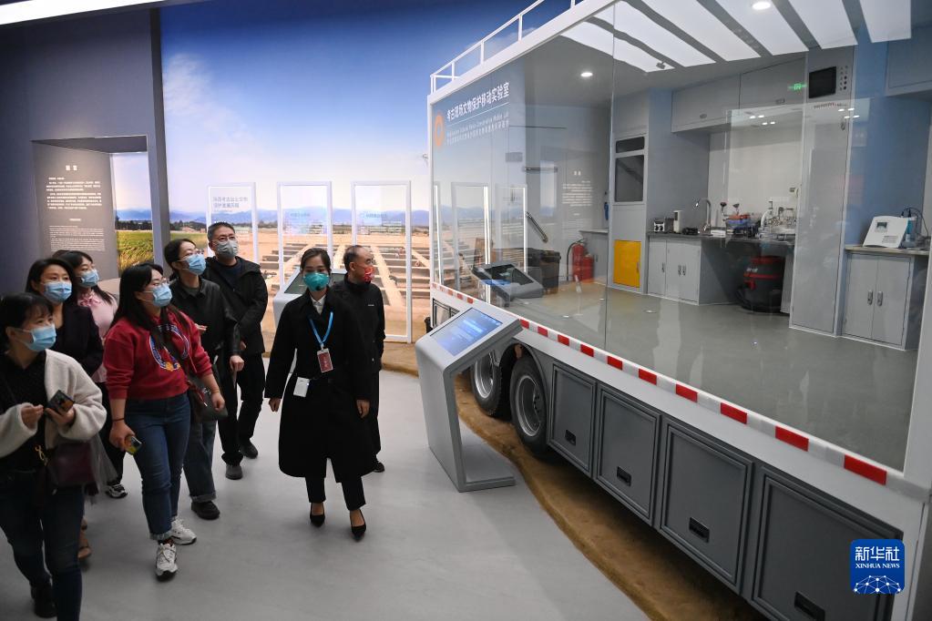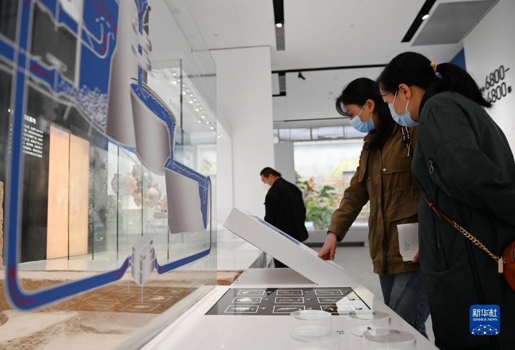 4月28日,游客在陜西考古博物館內(nèi)了解植物考古知識。新華社記者 李一博 攝