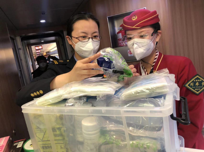 楊珺通常是早上5點(diǎn)剛過,就早早來到天津站站臺,等候登上早上6點(diǎn)半左右的第一班列車檢查乘務(wù)工作。疫情以來,楊珺總是習(xí)慣“早到一點(diǎn)”,充分利用這段“慢節(jié)奏”時(shí)間,靜下心來把近期的重點(diǎn)工作梳理清楚,編輯成微信溫馨提示發(fā)送給即將出乘的班組,方便大家閱讀學(xué)習(xí)。列車一到站臺,楊珺就和出乘的班組一同登上列車,開始了細(xì)致的檢查,車廂衛(wèi)生,備品擺放,物品定型,設(shè)備設(shè)施的狀況,防疫用品的配備,“勞動(dòng)節(jié)假期快要到了,客流量會(huì)比往日增加,這期間我們一定要比平時(shí)更加細(xì)致,像座位扶手、垃圾箱、門把手,只要是旅客頻繁接觸的位置,都必須逐一落實(shí)消毒要求……”每走到一個(gè)車廂,楊珺都會(huì)一遍又一遍地叮囑,并且和乘務(wù)員一起落實(shí)所在區(qū)域的重點(diǎn)安全工作。