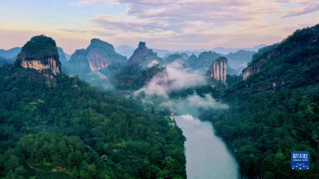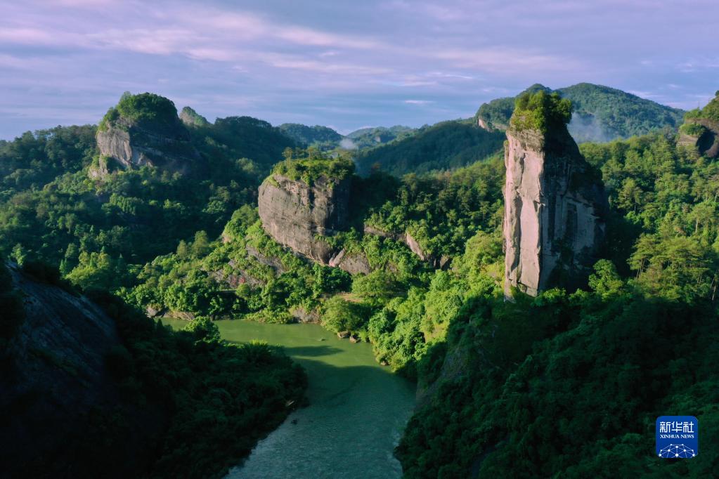 武夷山九曲溪兩岸的丹霞景觀(6月6日攝,無人機(jī)照片)。新華社記者 姜克紅 攝