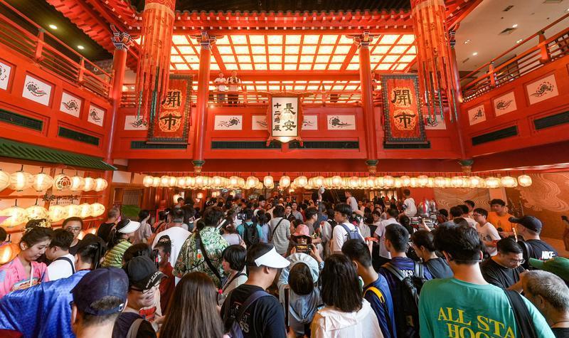 8月2日,升級后的長安十二時辰主題街區(qū)重新開放,吸引了大批游客參觀,讓西安的暑期旅游熱更加火爆。