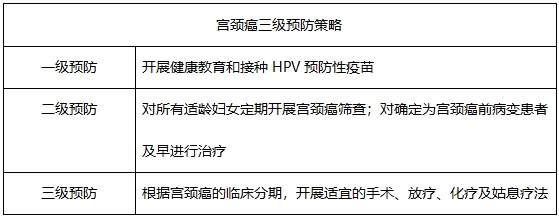 2017年中國子宮頸癌綜合防控指南提出了三級預(yù)防策略,其中接種HPV疫苗是第一步。