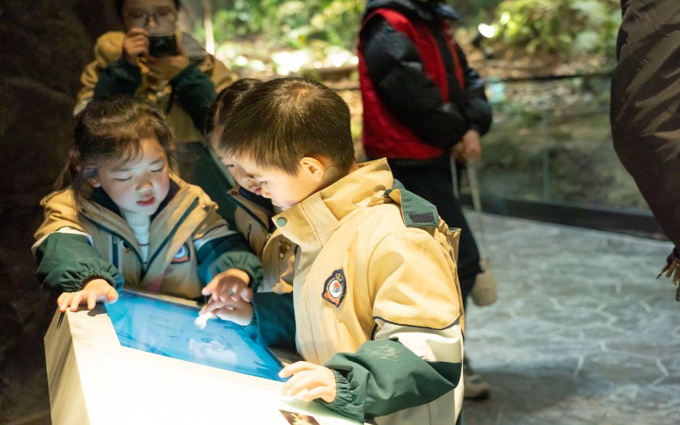 “媽媽,你看這棵樹上面也掛了牌子。”一大早,開化縣實(shí)驗(yàn)幼兒園的小朋友們來到古田山探索自然的秘密。小朋友與家長沿路而上,檵木、浙江大青、赤楊葉等植物被一一記錄在研學(xué)手冊(cè)上,有的小朋友還手持放大鏡觀察植物的脈絡(luò)紋理,將自己喜歡的樹葉記錄下來,剪出形狀。“今天很開心,我看到了喜歡的楊梅樹,還撿到了鵝卵石。”一個(gè)小朋友興奮地歡呼到。結(jié)束室外活動(dòng),孩子們與家長來到了錢江源國家公園科普館,近距離觀察野生動(dòng)植物標(biāo)本,學(xué)習(xí)錢江源國家公園動(dòng)植物相關(guān)知識(shí)。
